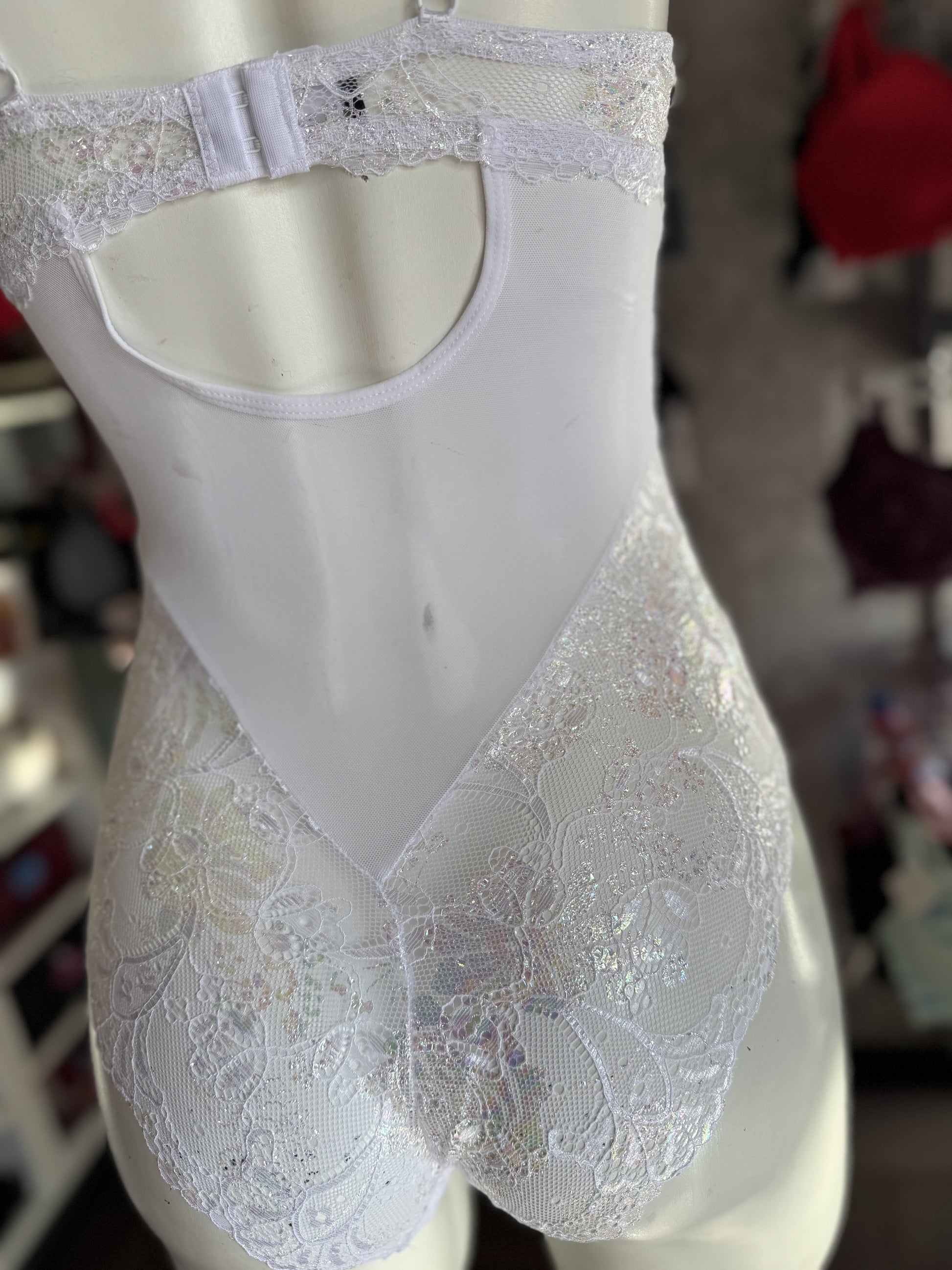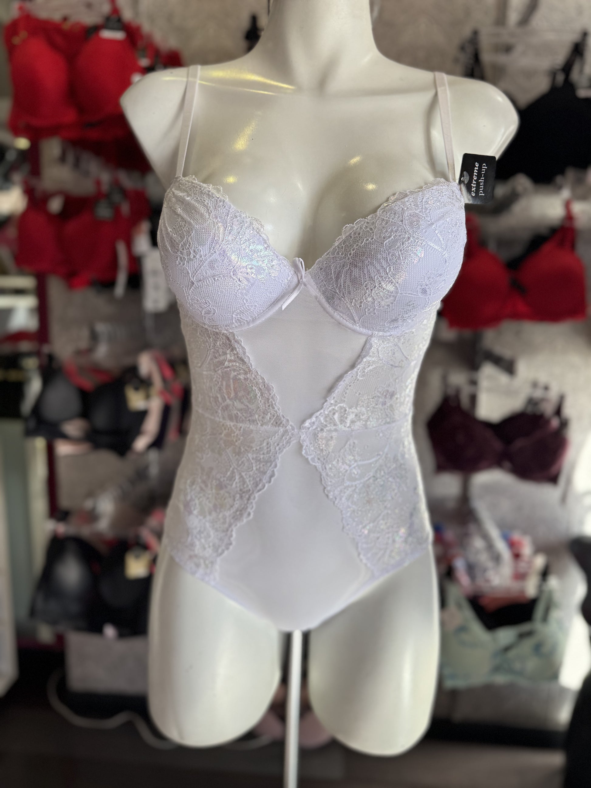 Cómodo, sexy y elegante Body en blanco tornasol con copa doble pushup.