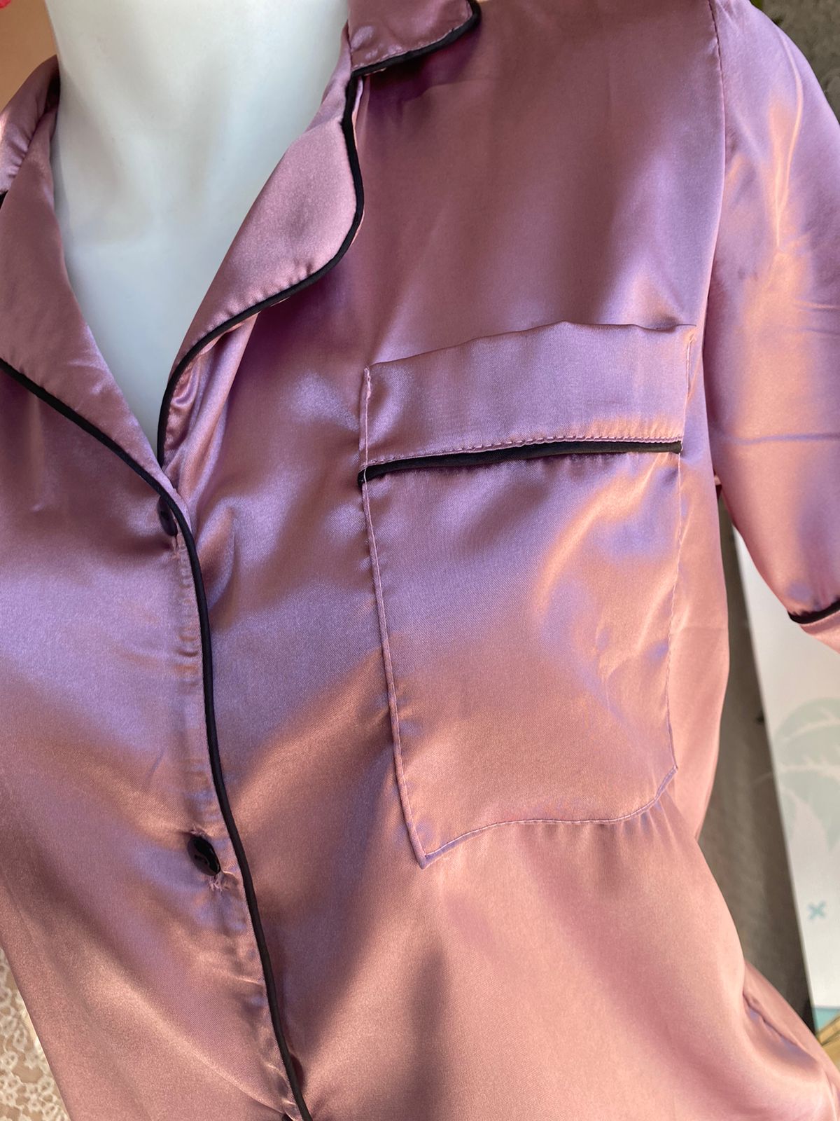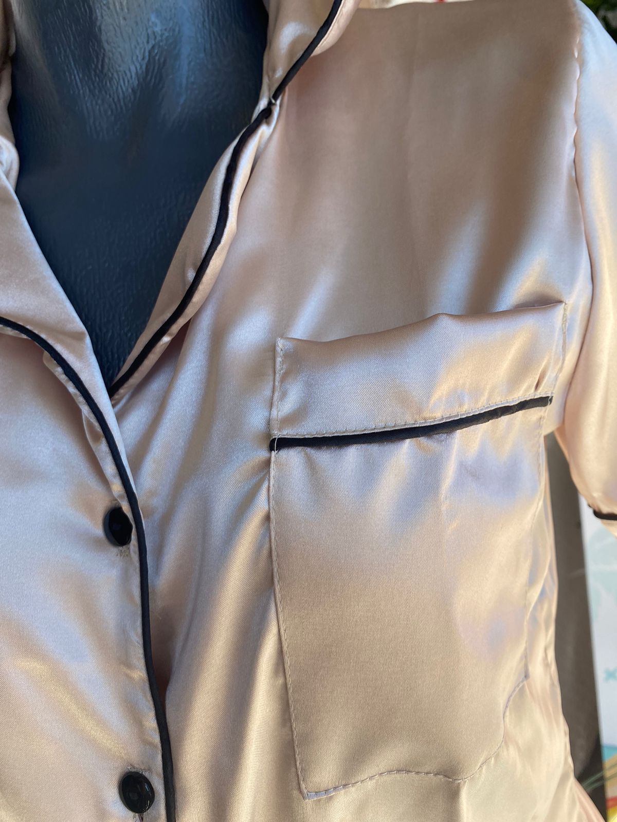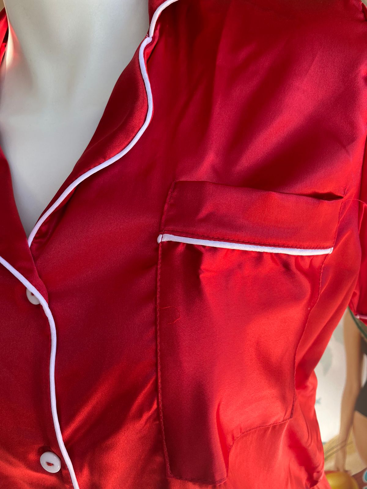 Pijama tipo satin. Tela deliciosa y suavecita. Manga corta de botones y short. Si necesitas algún color en especial o talla pregunta por whatsapp