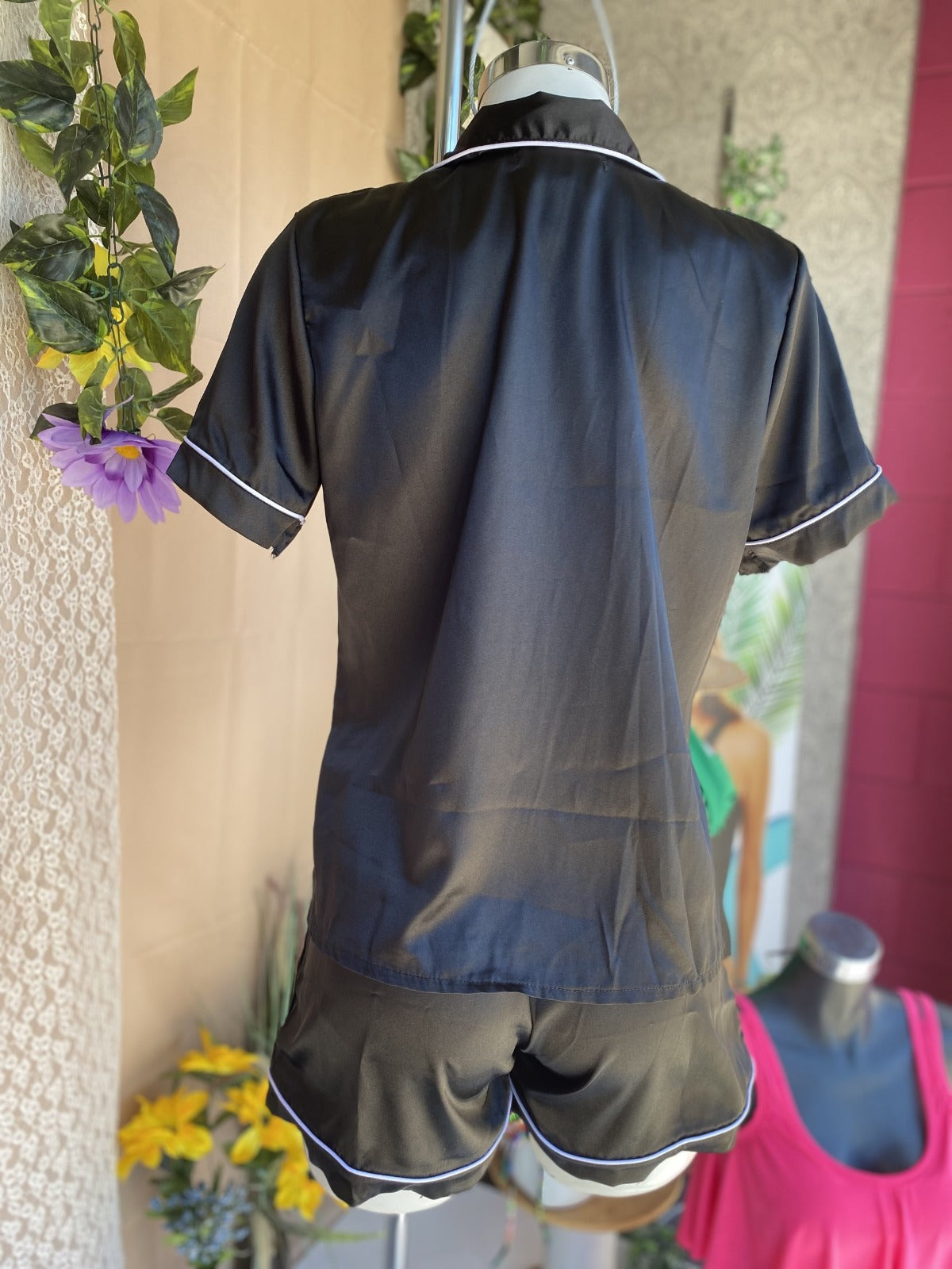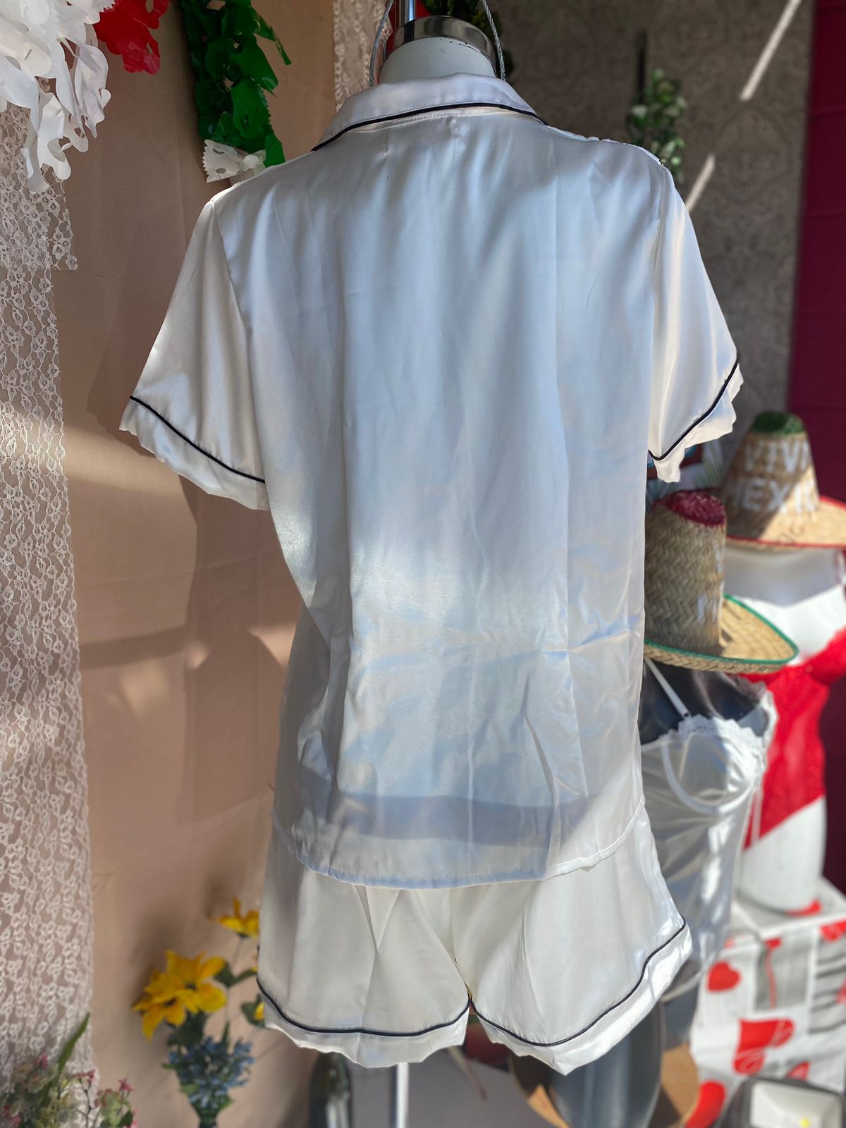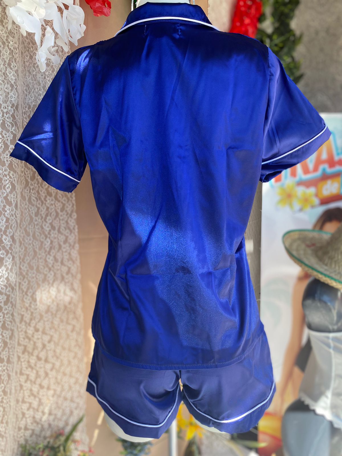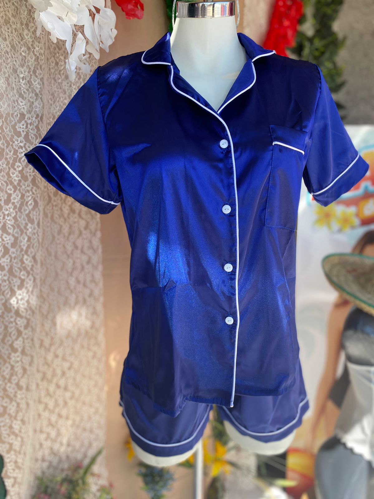 Pijama tipo satin. Tela deliciosa y suavecita. Manga corta de botones y short. Si necesitas algún color en especial o talla pregunta por whatsapp