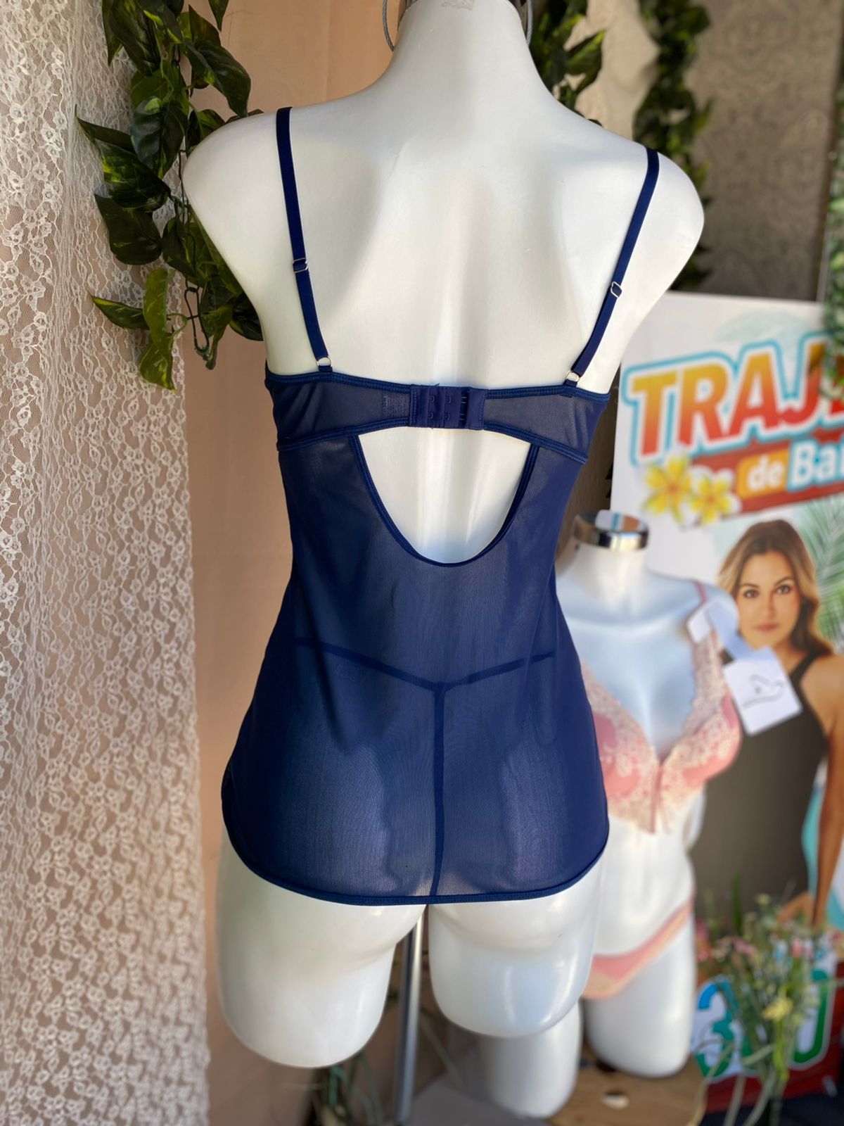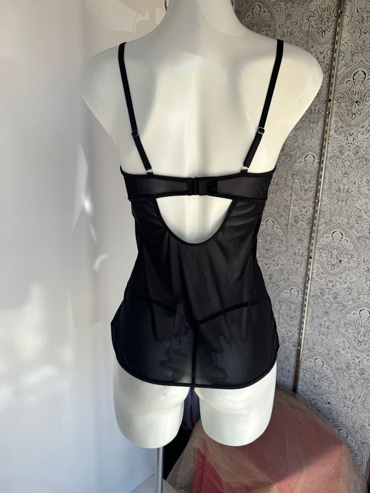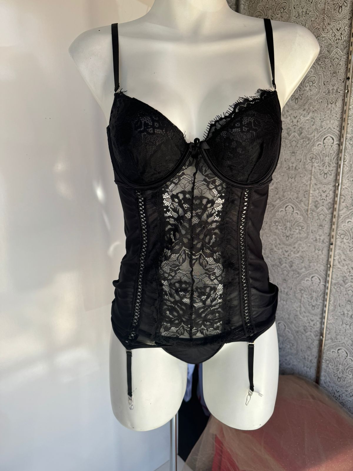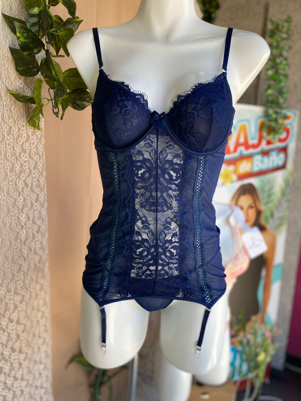 Coqueto Tedy con liguero, tanga y medias. La parte del bra con varilla.