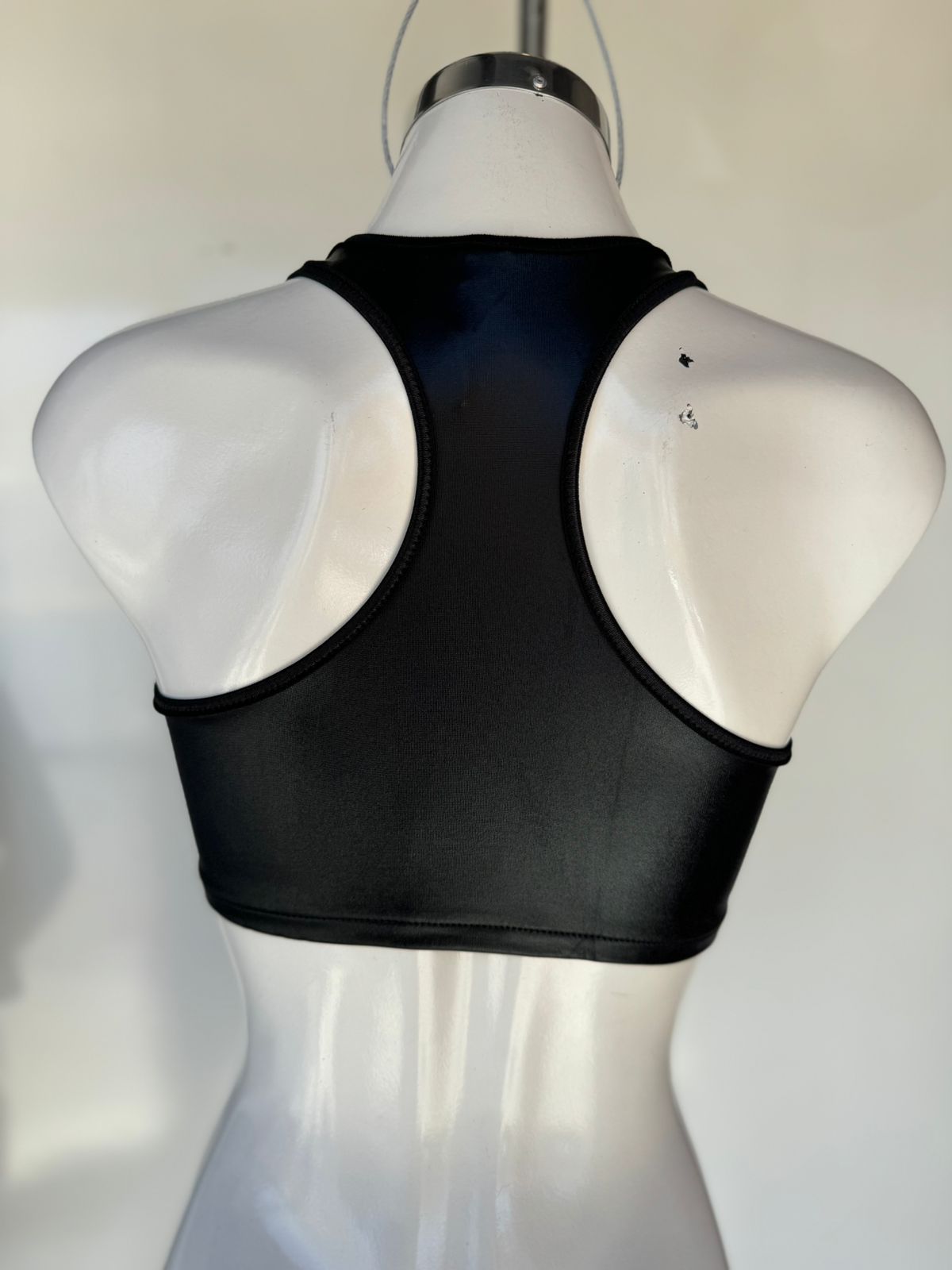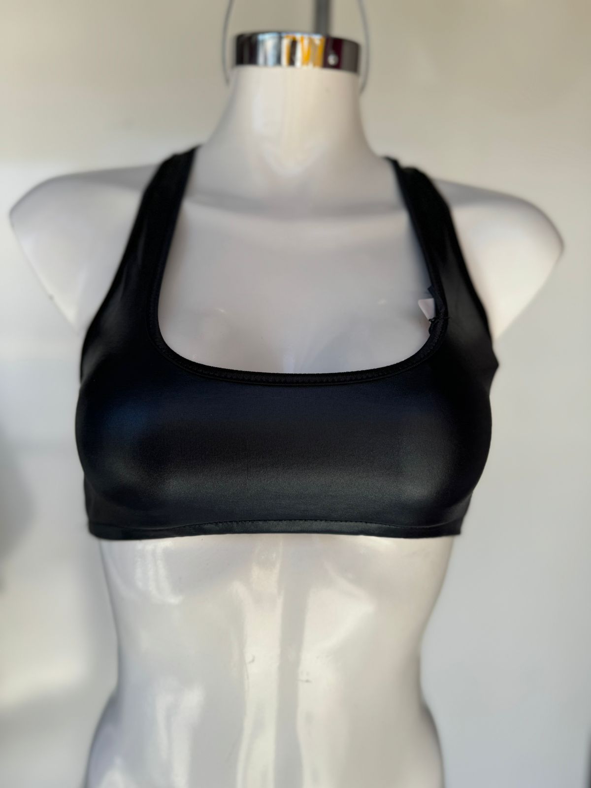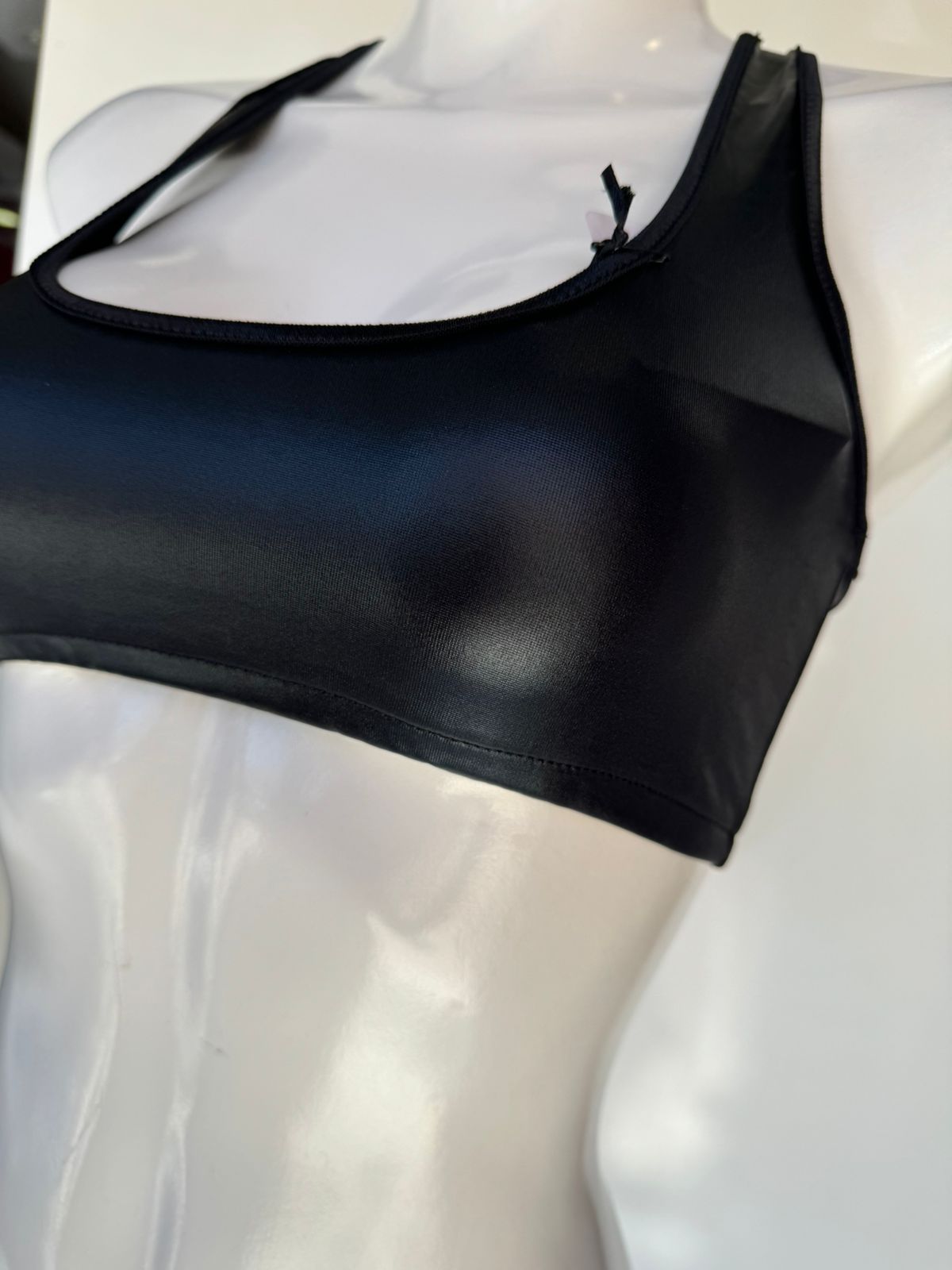 Cómodo top vinipiel. Sin copa preformada ni varilla.