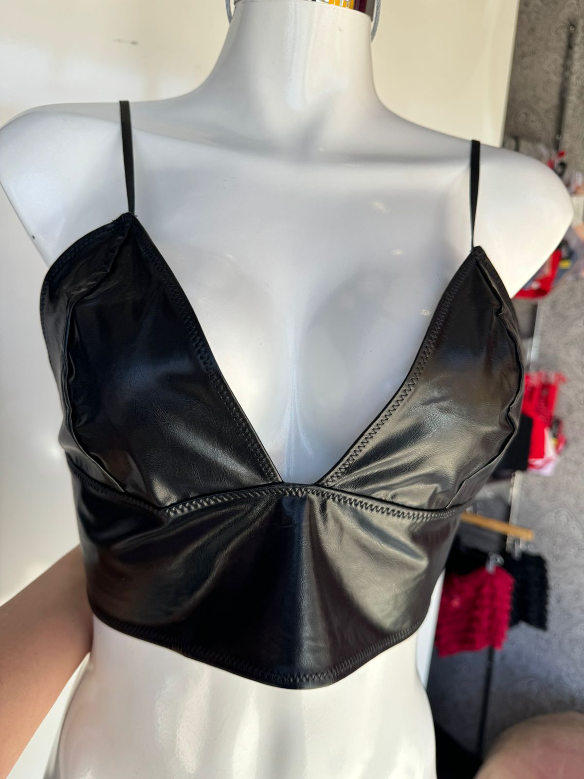 Sexy top de vinipiel sin varilla ni copa preformada.